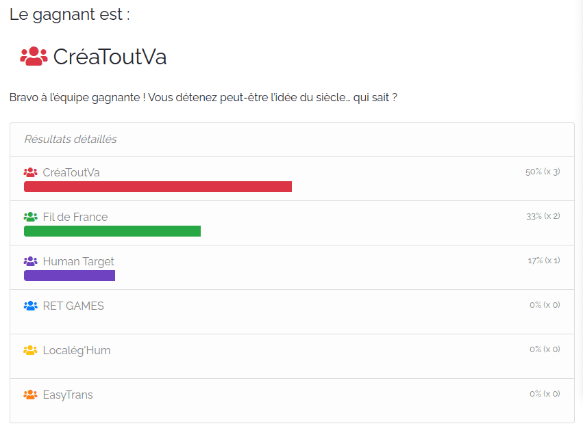 Enfin, les équipes présentent oralement leur projet au reste de la classe et argumentent leurs idées. Un système de vote en ligne permet de sélectionner le meilleur projet de la classe.