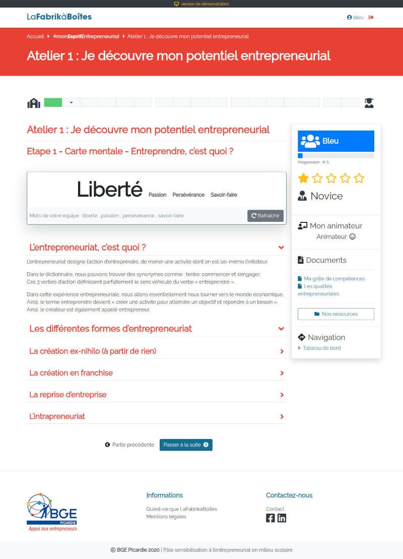 Pour valoriser le travail mené ainsi que les compétences développées, les élèves terminent ce parcours en dressant leur bilan individuel et en testant leur profil autour d’un test entrepreneurial.